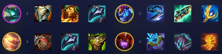 1.大天使之杖 2.石像鬼石板甲 3.日炎斗篷 4.巨人杀手 5.狂徒铠甲 6.海克斯科技枪刃 7.巨龙之爪(泰拉>艾达丝) 8.正义之手 9.莫雷诺秘典 10.离子火花 11.棘刺背心