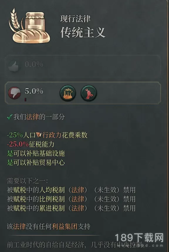 此外尽早的改掉传统主义,-25%的征税能力是极大的debuff