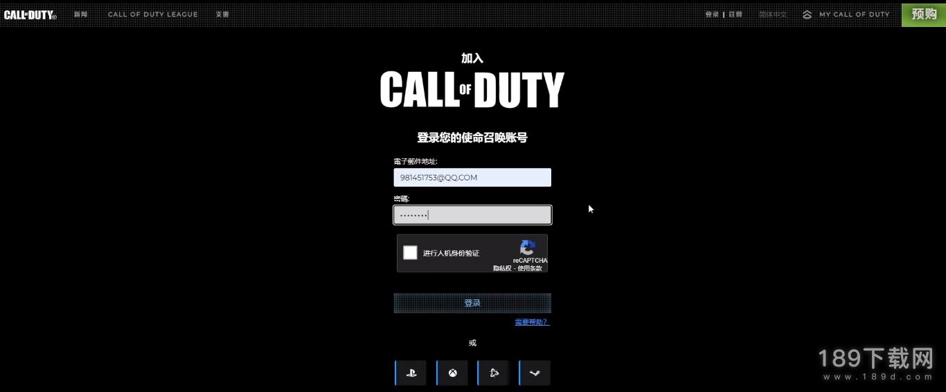玩家首先进入《使命召唤》官方网站,登录自己的国际战网通行证账号,如果没有则需要注册一个。如果无法加载请使用加速工具。