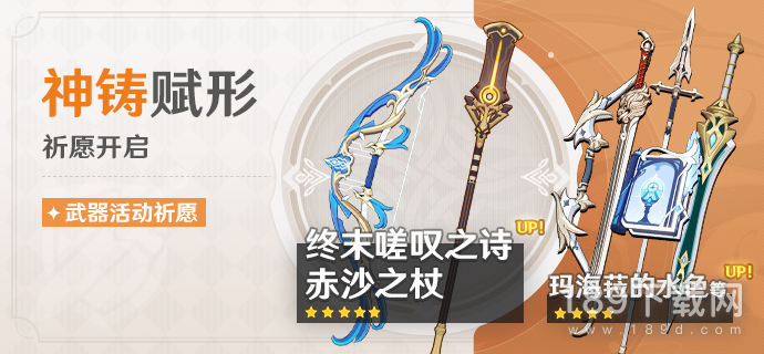 活动期间,限定五星武器「长柄武器·赤沙之杖」「弓·终末嗟叹之诗」的祈愿获取概率将大幅提升!
