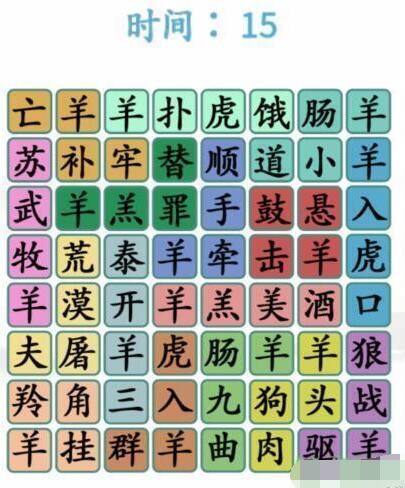 成语:亡羊补牢、苏武牧羊、荒漠屠夫、羚羊挂角、饿虎扑羊、羊肠小道、替罪羔羊、三羊开泰、顺手牵羊、悬羊击鼓、羊入虎口、羊羔美酒、虎入羊群、羊肠九曲、羊头狗肉、驱羊战狼。