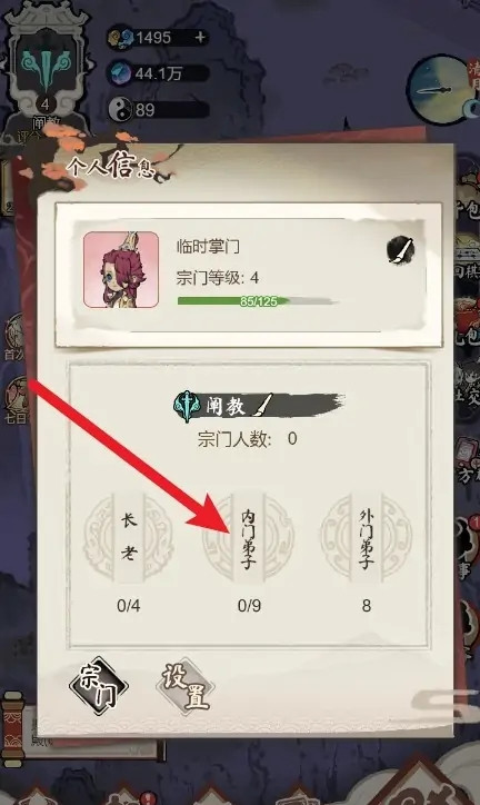 接着在弟子个人信息界面里,点击内门弟子,这样就可以将该弟子变成内门弟子了。