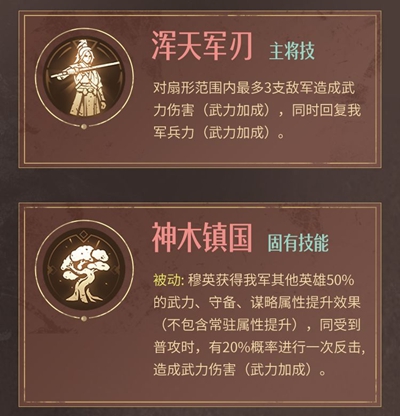 1、穆英属于打反击的输出,兵种特性是枪,战斗风格是勇武。