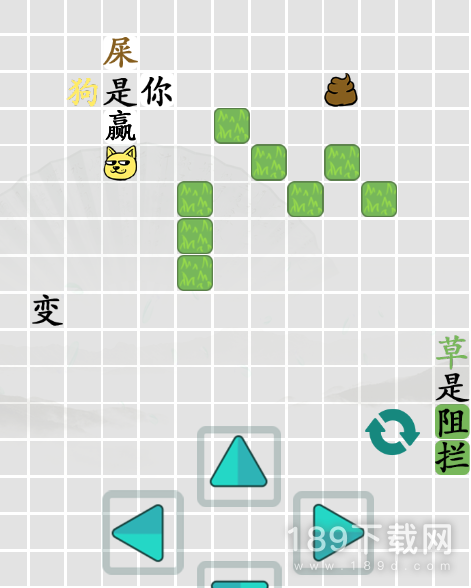 2、首先需要移动小狗去撞击【变】字两次,这样边框就会消失。