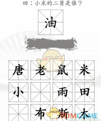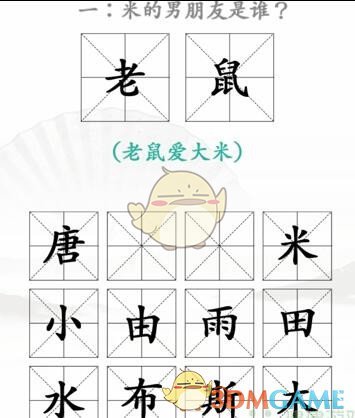 1、首先玩家进入游戏需要答题,第一题玩家只需要将老鼠两字放入即可。