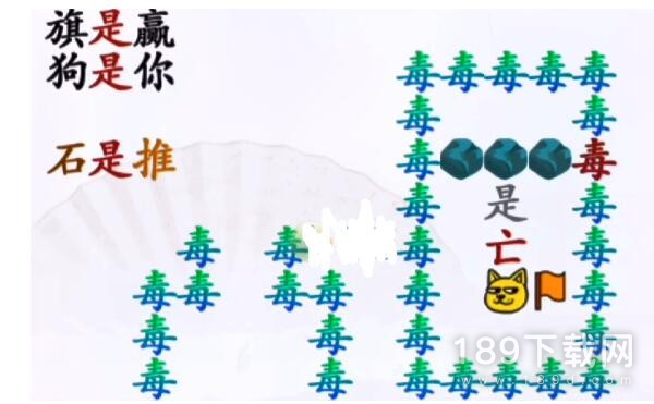 2、然后把三个石头分别推到与红色的毒字齐平的位置