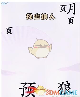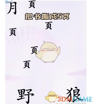3、变成5个页后,玩家将野字的里去掉,再将页放在予的后面变成预,然后预就直接对狼攻击了。