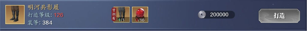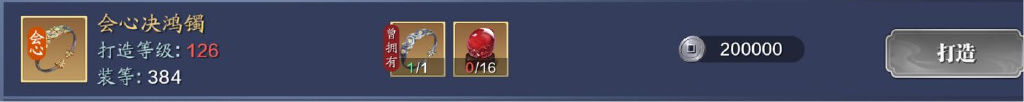 126级可以打造初级装备玉佩、戒指+进阶鞋子、手镯,总共可以打造4件装备。周五打完困难本,可以先进阶腰带,需要预留952个8级精工材料。126级共可打造4件装备,整体提升的功力数额不会低——所以少侠们可以不必担心资源需求降低,功力提升数额也会降低的问题。