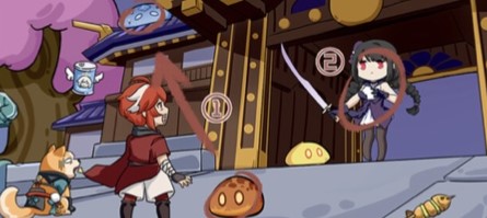 1、先拖动红色史菜姆到蓝色史莱姆处会合成紫色史菜姆。