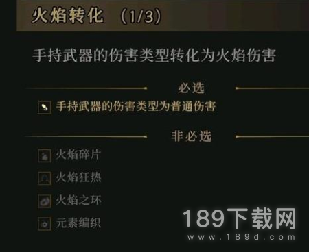 3、在武器的搭配元素方面可以选择火焰之环/火焰狂热/火焰碎片/元素编织这四个中的两个就可以了。