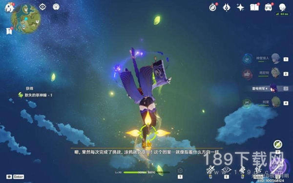 到可以拉的四叶印,我们快速往上飞,就可以拿到一个草神瞳啦