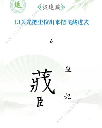 先把臣拉出来,把飞藏进去,再将臣移到妃的下方将缺口堵住。
