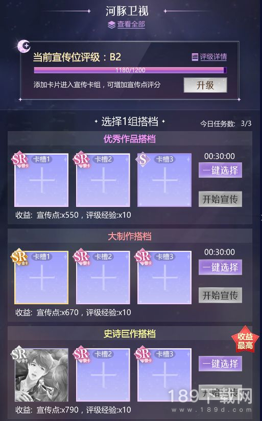 每次可以选择一组作品搭档来进行宣传,每组作品搭档的收益都不同,收益越高对卡片搭档的要求当然也就越高啦~
