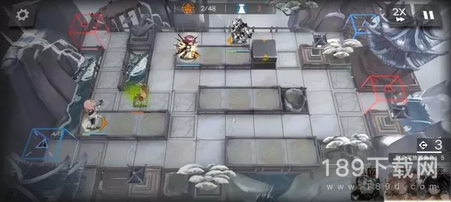 开局先部署能天使冲右侧攻击,然后部署蓝毒冲右侧攻击,蓝毒不需要开模组,当然你开了更好,打起来更快一些,不开也没影响,之后上路部署山,开二技能。