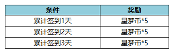 活动期间每日签到即可获得星梦币*5,共可获得星梦币*15