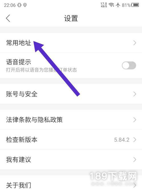3、进入设置后,点击常用地址选项。