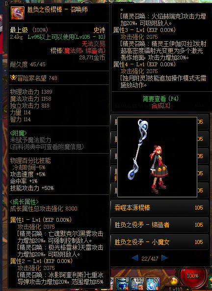 《DNF》105级胜负之役棍棒召唤师装备属性