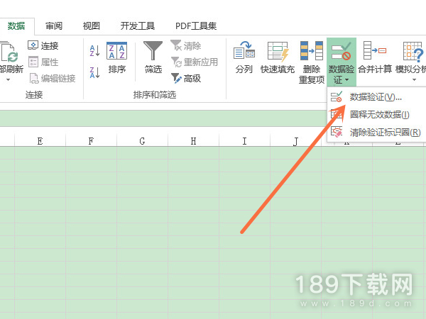 1、打开excel表格,点击单元格,在数据选项下点击数据验证,再点击数据验证。