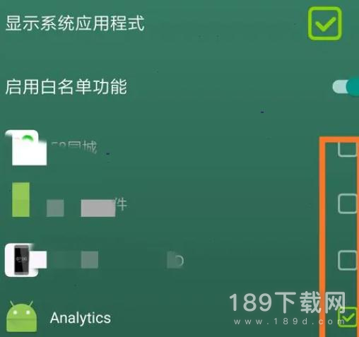 在启用白名单后,用户勾选想要放入白名单中的应用即可完成添加。