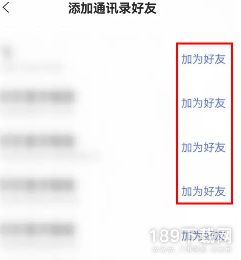 5、在添加通讯录好友界面中点击好友昵称后面的加为好友选项。