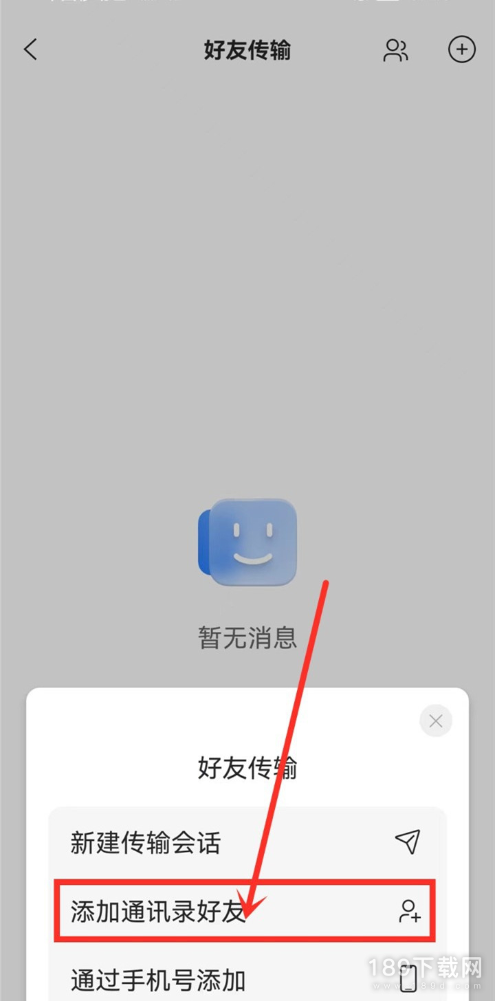 4、在弹出的操作选项中点击添加通讯录好友选项。