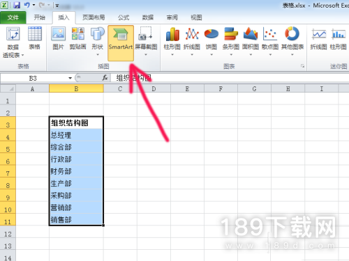 在《Excel》表格中,用户可以通过插入SmartArt完成组织架构图的制作。