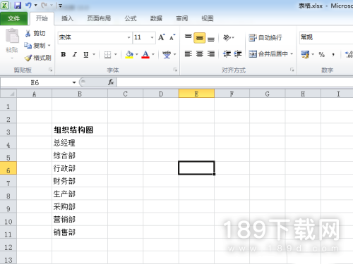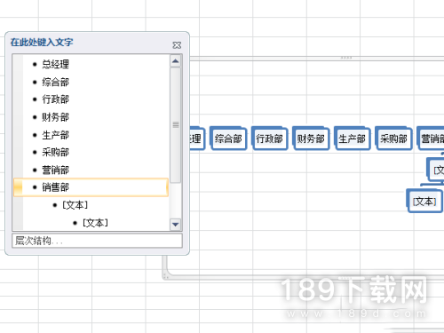 6、在每个部门名称前按键盘上Tab键调节层次,每按一次,层次就下调一级,调整完成了,单击表格空白处,架构图就绘制成功了。
