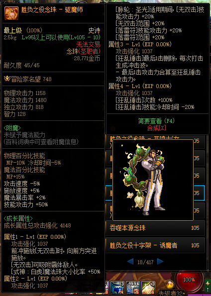 总结:“胜负之役念珠-驱魔师”装备属性非常优秀,对于驱魔师来说属于非常好的毕业武器。