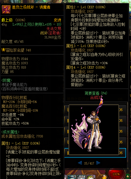 《DNF》105级胜负之役战斧诱魔者装备属性