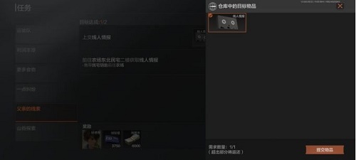 打开角色页面,将线人情报放入仓库,然后打开任务页面,点击提交会弹出一个窗口,选择里面的线人情报进行提交物品,这个任务就完成了。