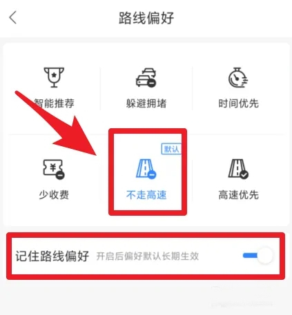 选择高速优先并默认:打开高速优先的开关,勾选记住路线偏好即可。