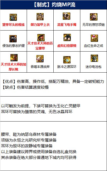 该搭配是没有过多的要求,伤害高且额外操作量较少,基本每个玩家都可以打出该流派装备的伤害上限,但该流派装备的MP消耗量巨大,不适合长时间攻坚副本。