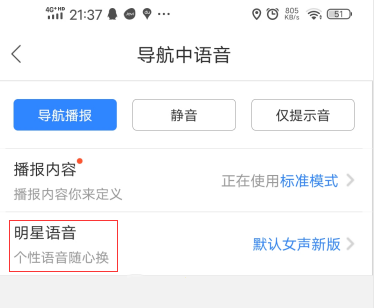 5、进入之后,点击里面的“明星语音”设置。