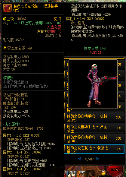 《DNF》105级胜负之役左轮枪女漫游枪手装备属性