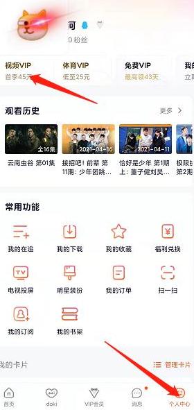 1.点击进入《腾讯视频》APP,在APP中进入个人中线并点击“视频VIP”按钮。