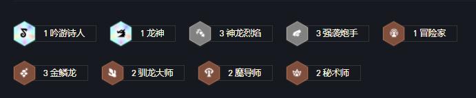 2.羁绊构成:1吟游诗人、1龙神、1唤星者、3神龙烈焰、3强袭炮手、1冒险家、3金鳞龙、2驯龙大师、2魔导师和2秘术师