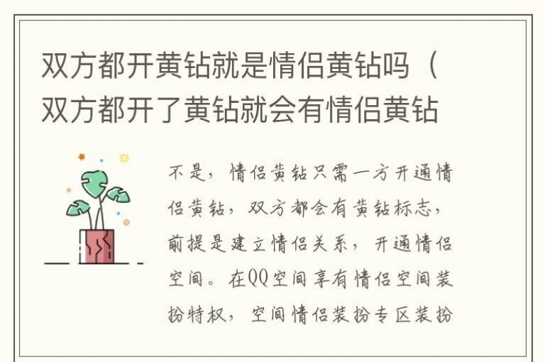 不是,情侣黄钻只需一方开通情侣黄钻,双方都会有黄钻标志,前提是建立情侣关系,开通情侣空间。在QQ空间享有情侣空间装扮特权,空间情侣装扮专区装扮免费穿,空间专属情侣挂件;点击进入情侣专区即可。