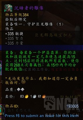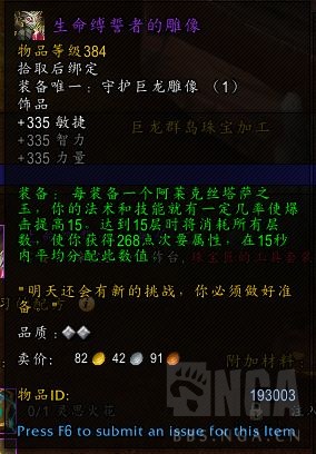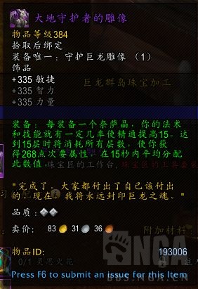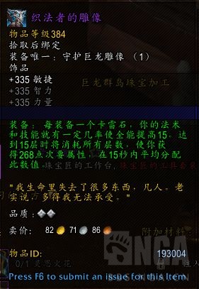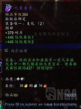 珠宝的散件部位非常优秀,不仅提供了插槽,还提供了一些特效,虽然初期大部分人可能只能选择使用不是“美化装备”的逝水年华项链和泰坦洞察玺戒,因为其获取简单,其他两种产品或多或少都需要额外的活动,但是整体上是不可取代的