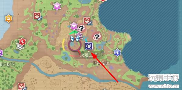 2、然后木桩会消失,我们传送到地图中的火难之祠。