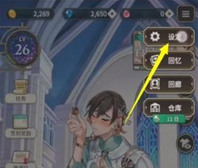 - 游戏右上角有个 三 ,点击以后开启 设定 ;