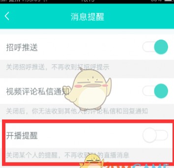 - 将开播提示反面的滑块取消便可。