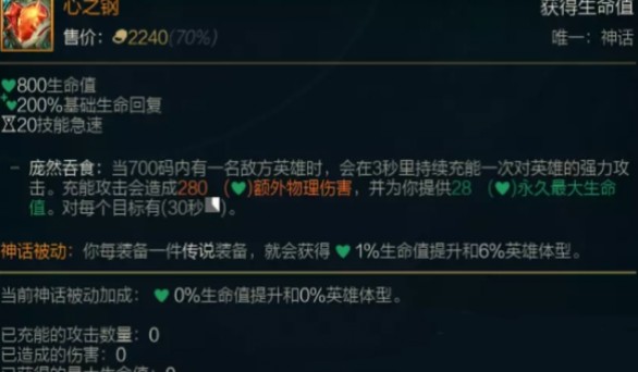 1、装备的根基属性是八百生命值,百分之二百的生命复原,尚有二十的技能迅速,这个都不是核心,核心是他的被迫,含有无限成长的效果。
