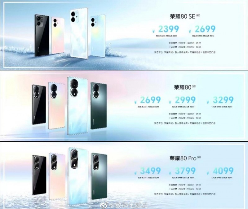 荣耀80SE :8+256GB版本2399,12+256GB版本2699;