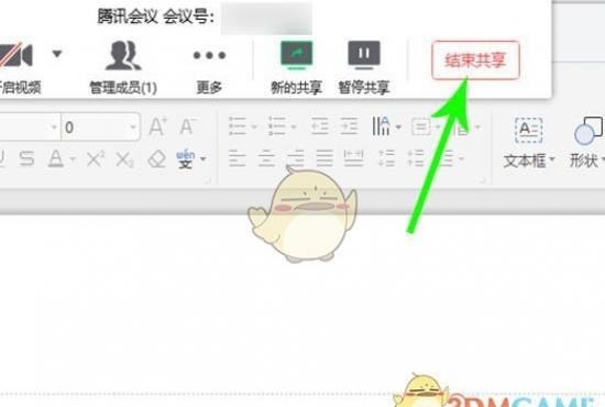 - 点击后,系统开始同享ppt文档窗口,使用电脑和手机观看参会职员都可看到同享的ppt文档。想要中止同享ppt文档时,则将鼠标移动至会议号地点,地点见下图。