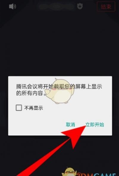 - 加入会议后,点击“同享屏幕”,尔后点击“登时开始”。
