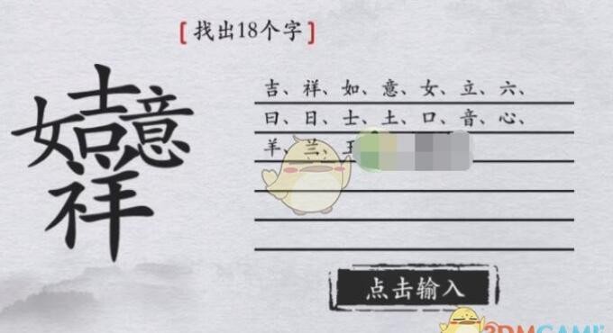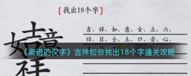 离谱的汉字是抖音内里一款以文字为大旨的闯关游戏,游戏中吉祥如意找出18个字何如过?这一关标题问题由吉祥如意四个字构成,大伙需求进一步拆分,找出此中隐藏的汉字。接下
