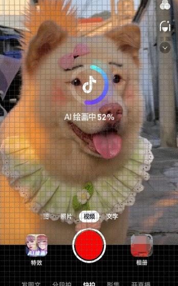 - 接着在拍摄按钮的上方能够选择视频也能够选择照片,而后点击拍摄按钮左边的 ai绘画殊效 。