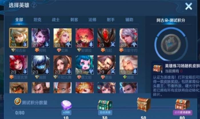 而皮肤宝箱必要80个尝试积分,意味着你必要完成80位英雄的任务才力拿到皮肤宝箱。
