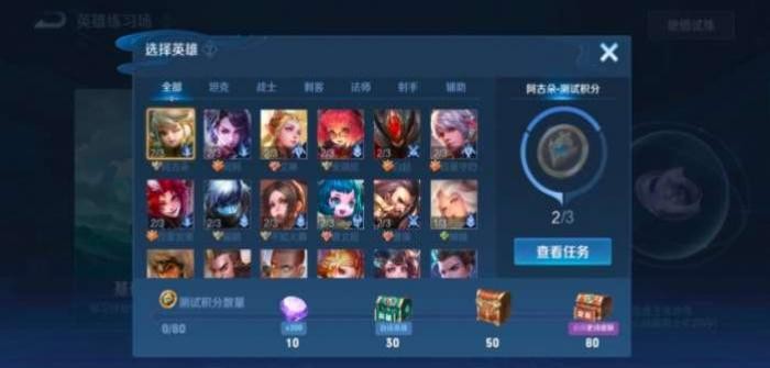 每个英雄都有三个任务,三个任务全数完成并领取奖励后,便可得到1个尝试积分。