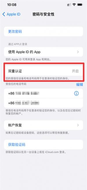 1、在手机设置界面中,点击顶部AppleID。2、在AppleID界面中,点击密码与安全性。3、在密码与安全性界面中,即可查看双重认证。